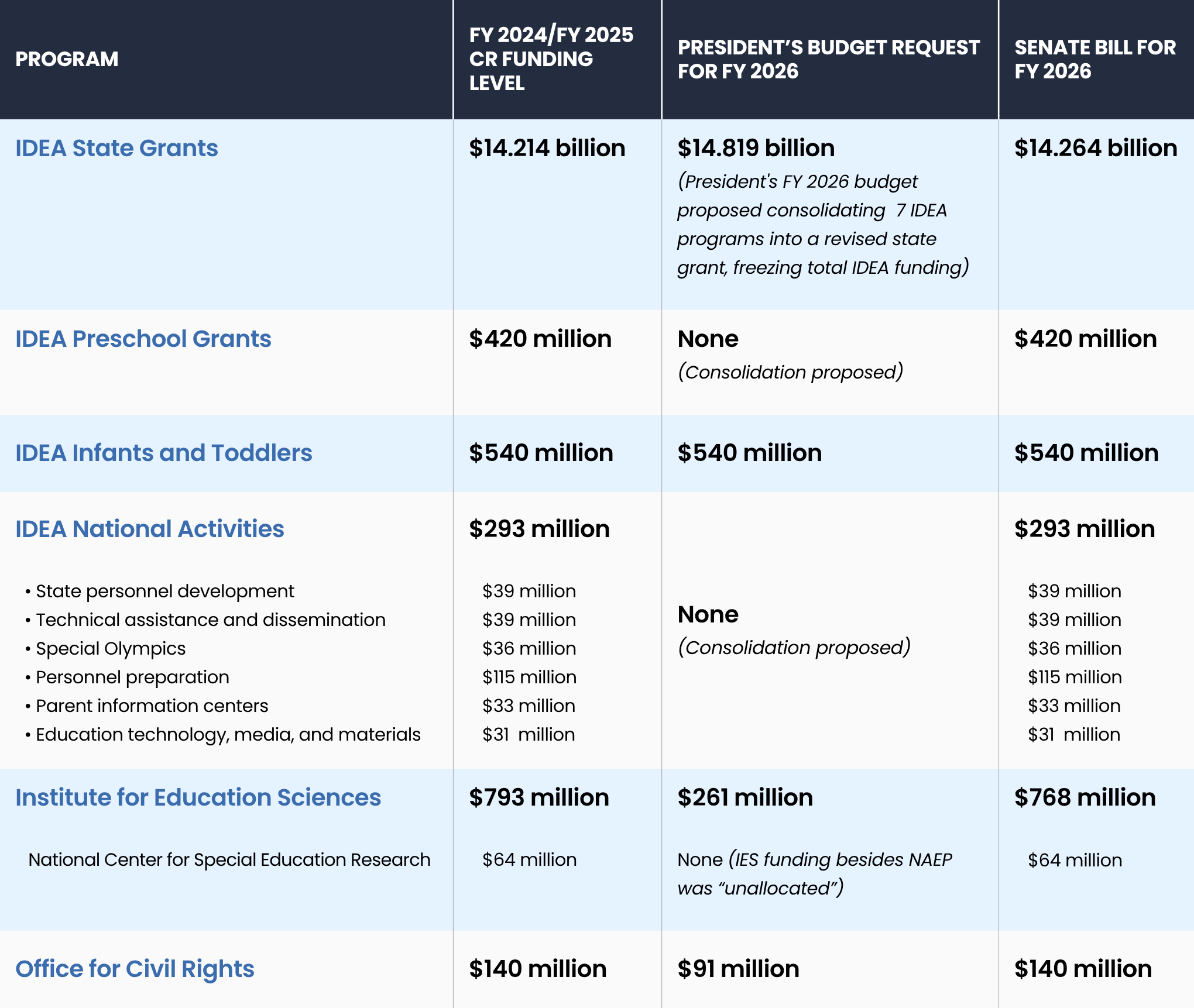 See funding levels for programs impacting students with disabilities below: